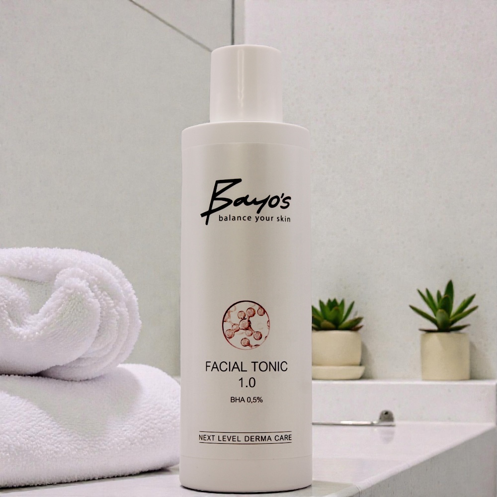 Das FACIAL TONIC 1.0 ist ein klärendes, parfümfreies Wirkstoff-Tonic mit 0,5 % Salicylsäure. Es ist speziell entwickelt zur täglichen Anwendung bei unreiner, öliger oder verhornter Haut. Die sanft exfolierende Formel entfernt abgestorbene Hautzellen, beugt Unreinheiten vor und unterstützt ein sichtbar verfeinertes Hautbild, ganz ohne auszutrocknen.