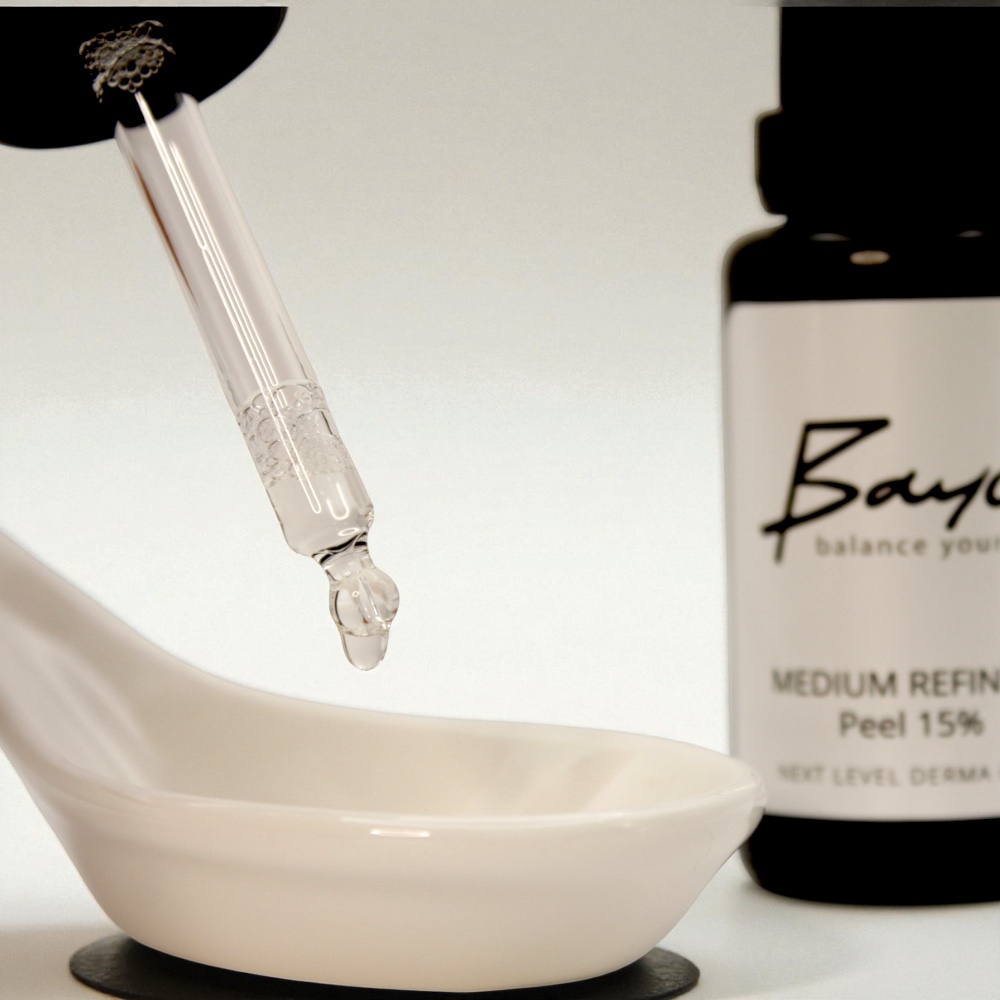 Tipp: Um ein intensiveres Ergebnis zu erzielen, kann das Medium Refining Peel 15% auch als intensivkur verwendet werden. Das Peeling in einem Zeitraum von 4 Wochen 2–3-Mal wöchentlich verwenden.